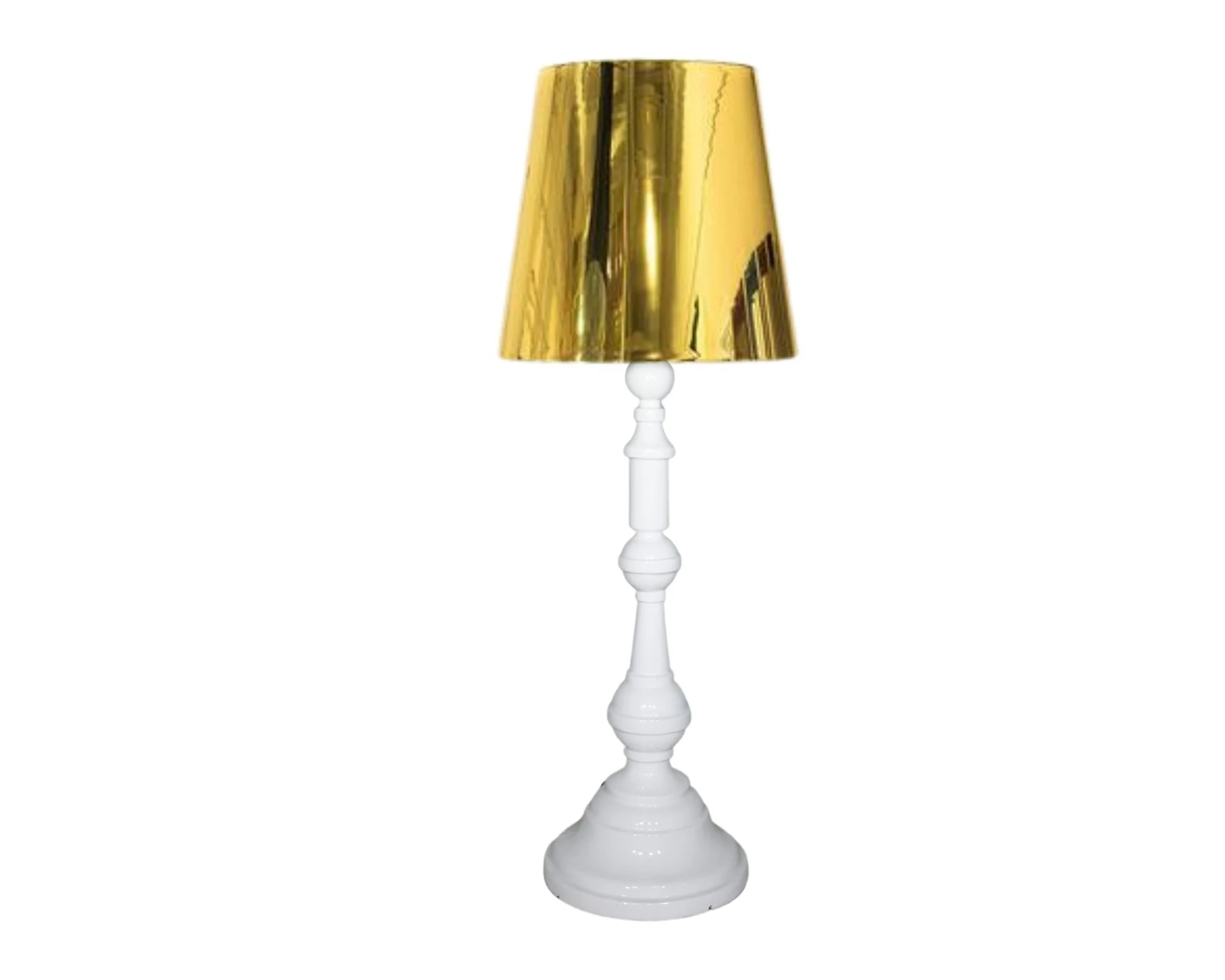 White Spindle Lamp with Gold Shade