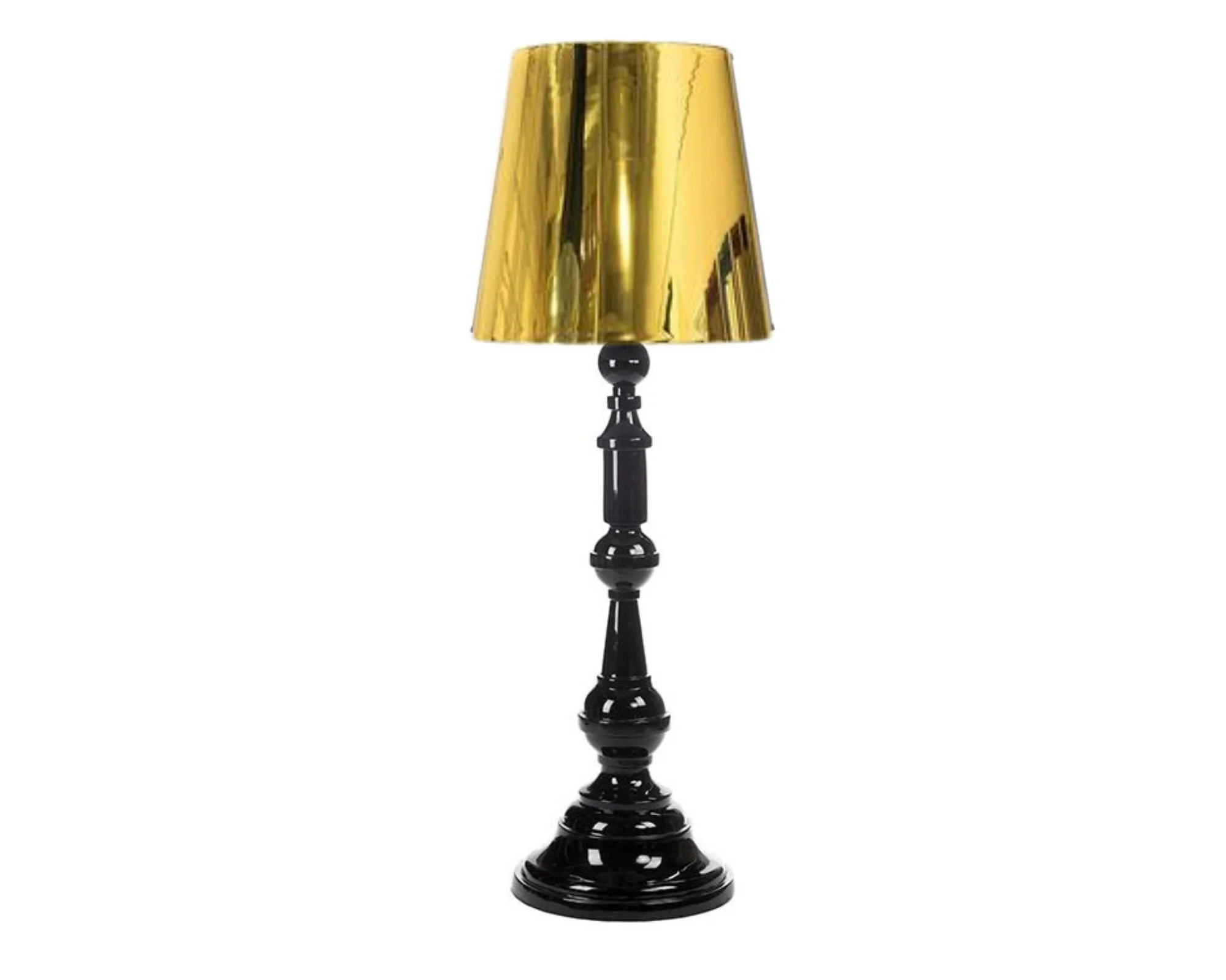 Black Spindle Lamp with Gold Shade