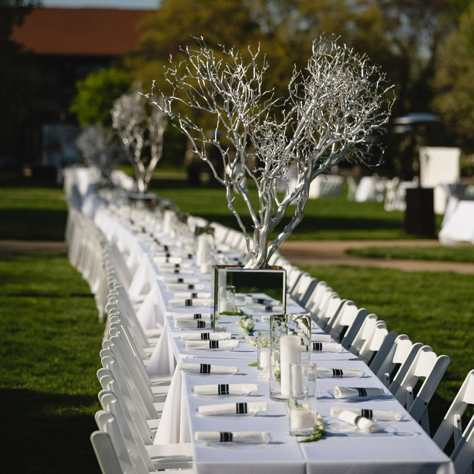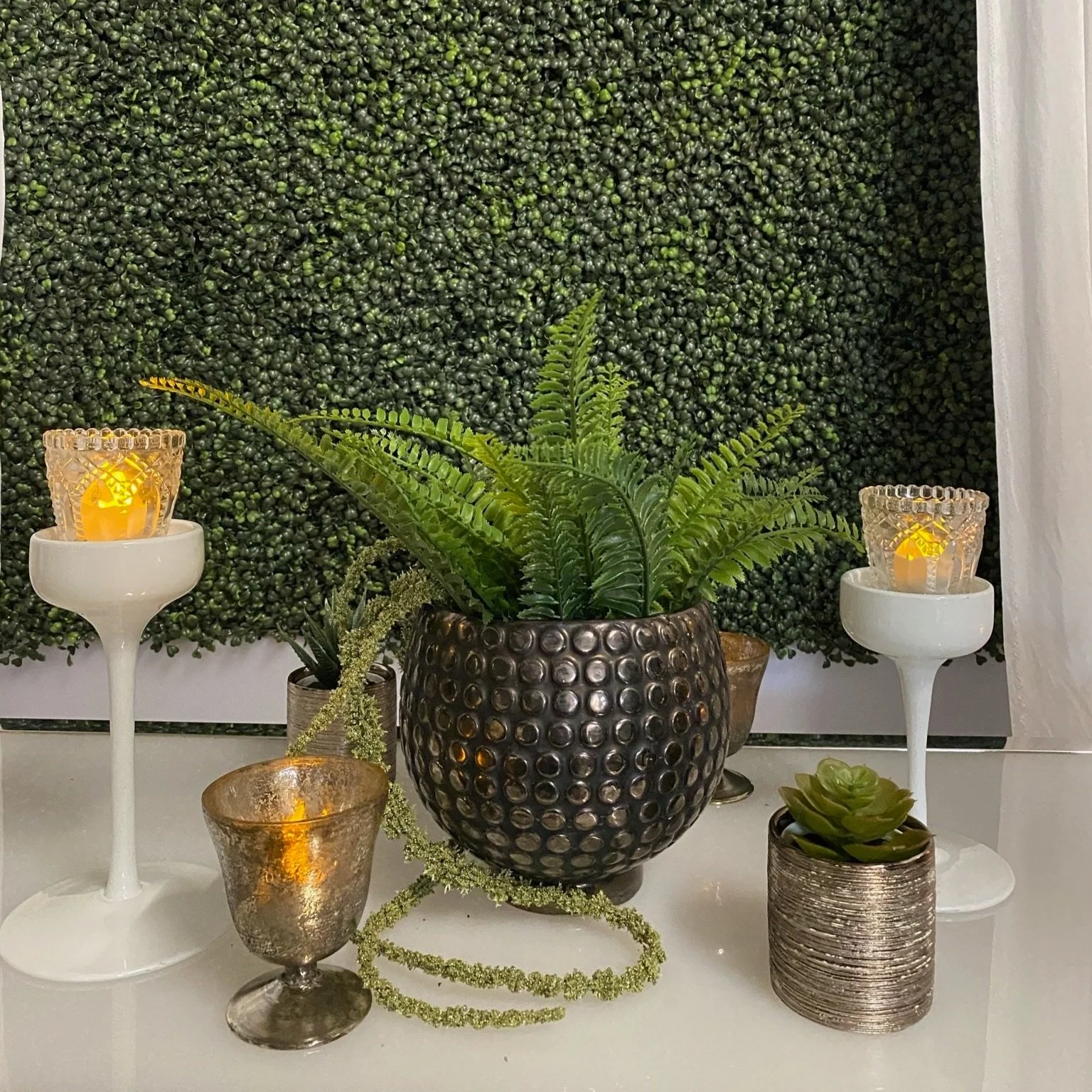 Our Tabletop Collection provides a stylish alternative to floral to enhance the look of your event space. Large focal centerpieces or a small faux greenery options are available along with a multitude of candle choices to create an effective design.